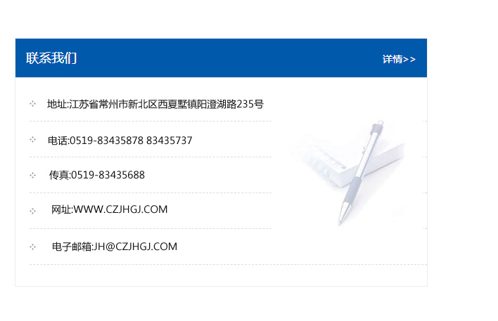 傳真:0519-83435688    郵編:213135    網址:WWW.czjhgj_com.njdjjz.com    電子郵箱:JH@czjhgj_com.njdjjz.com